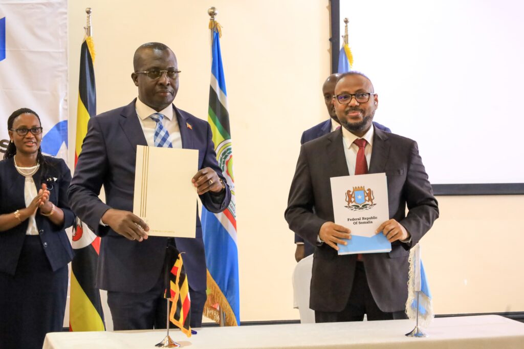 The MOU was signed between H.E Hon. Farahsheikh Abdulkadir, Minister of Education of the Federal Republic of Somalia led the Somali and Hon. John Mulimba, Minister of State for Foreign Affairs in Charge of Regional Cooperation of Uganda
